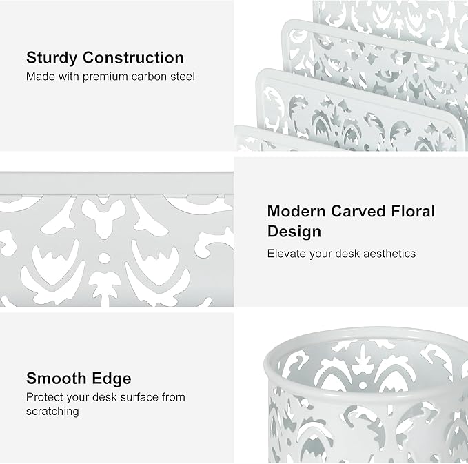 - Stylish Functional Workspace Upgrade: Elevate your desk aesthetics while boosting productivity! The elegant carved design complements modern offices, cubicles, or home desks. The aesthetic desk accessories can bring you a good office mood. Let you enjoy the ease and pleasure brought by the lovely and unified colors in your work.