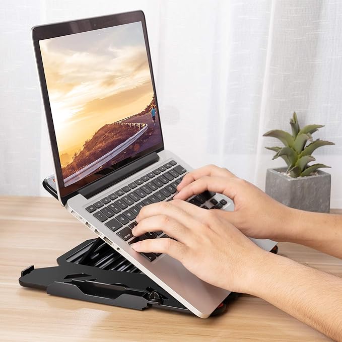 - 【Sturdy & Lightweight Design】Crafted from aircraft-grade ABS + non-slip silicone pads, this stand securely holds 10-17” laptops and tablets without wobbling. The matte finish resists scratches and fits MacBook Pro 16", Dell XPS 17, and gaming laptops.