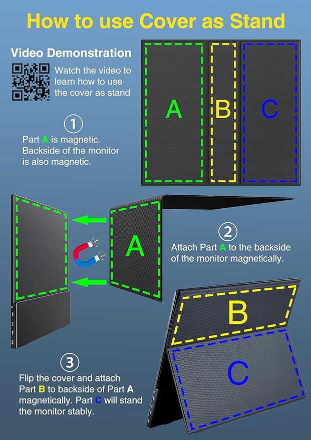 cocopar Portable Monitor 15.6 Inch 1080P FHD 60Hz 85% sRGB Travel Monitor with Speaker HDMI USB-C Second Screen for Laptop MacBook Surface PC Xbox PS4/5, VESA Mountable, with Cover Stand