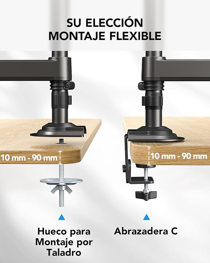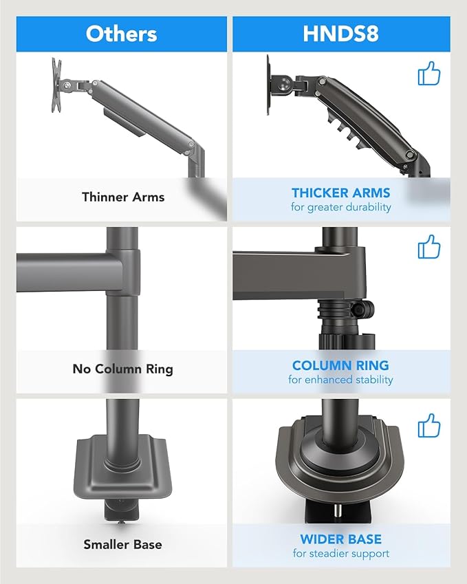 - Fast & Easy Setup, Sturdy & Reliable – Installing this monitor mount is a breeze, with options for C-clamp or grommet mounting on desks with thicknesses ranging from 0.39”-3.54”. Built to last, this dual monitor arm has been tested for stability, ensuring no shaking or slipping during use. Perfect for solid wood or metal desks (not for glass desks), this vesa monitor mount provides reliable and durable support for your dual display setup, giving you the confidence you need for your workspace.