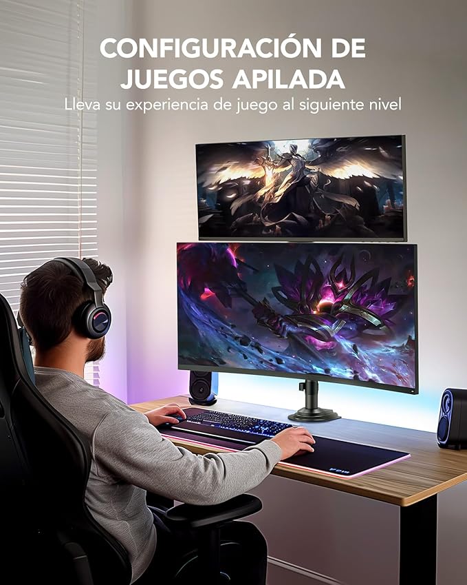 - Full-Motion Flexibility – With 90° tilt, 180° swivel, and 360° rotation, this monitor stand provides ultimate flexibility to customize your viewing angles. Adjust the screens to reduce glare, switch between sitting and standing positions, or find the ideal angle for video calls, gaming, or content creation. This dual monitor stand ensures you can achieve the perfect posture and view for all your tasks, boosting your efficiency and comfort.