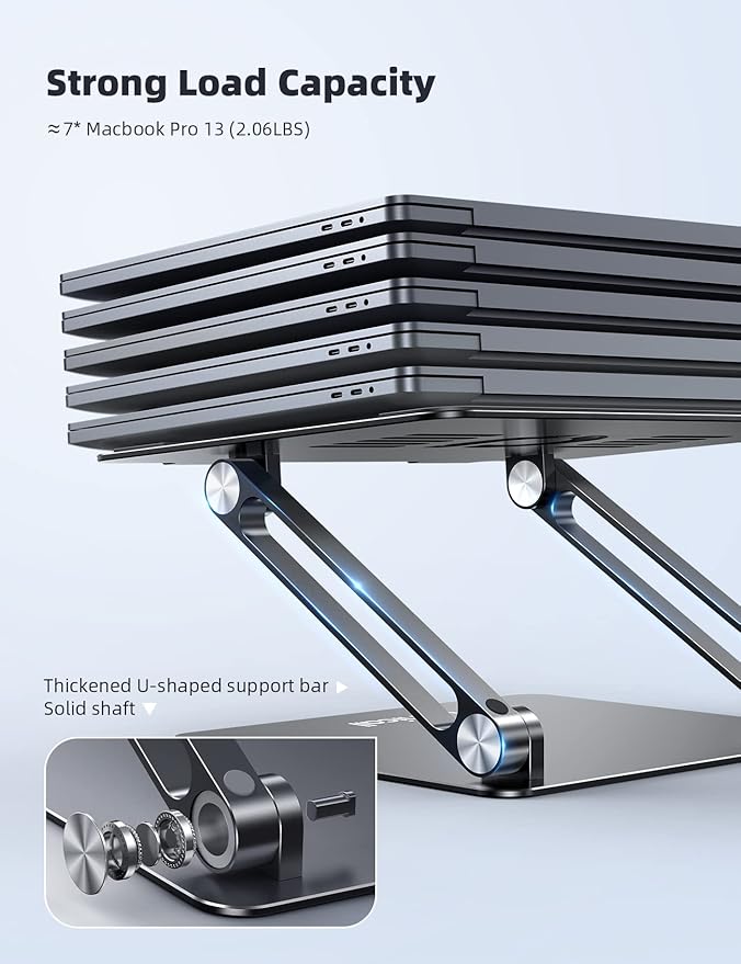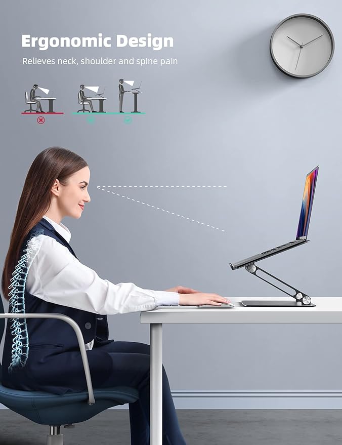 - Ergonomic Design: The MacBook air pro stand holder works as a raiser to elevate the laptop screen to your eye level. The office computer stand let you fix posture and relieves neck, shoulder and spinal pain, it's very comfortable for working at home, office and outdoor, make typing more easier.