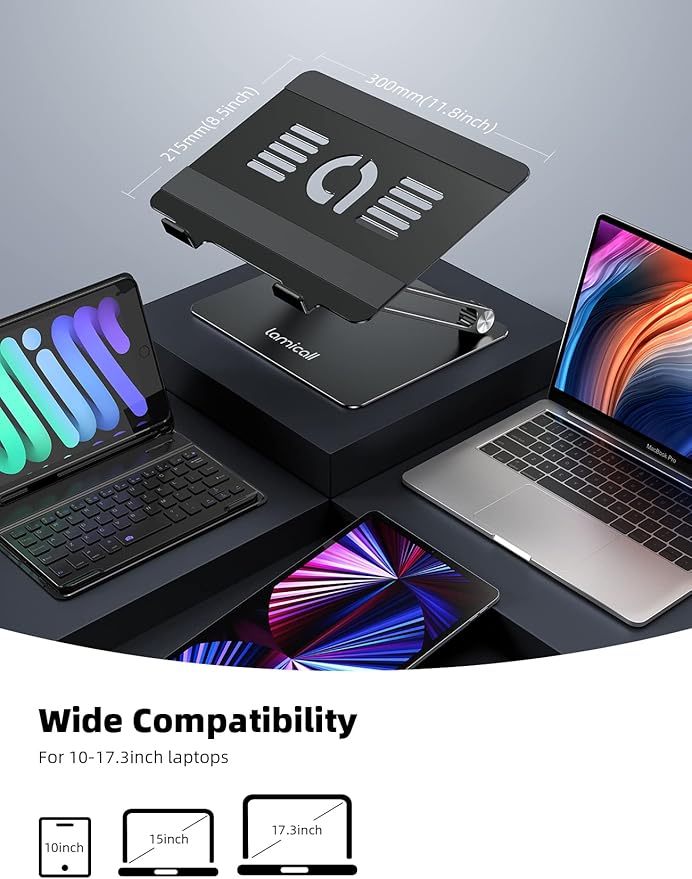 - Wide Compatibility: The laptop stand for desk is compatible with all laptops from 10" up to 17.3", including popular models like MacBook, MacBook Air, MacBook Pro, Surface Laptop, Dell XPS, Google Pixelbook, HP, ASUS, Acer, Chromebook, Alienware, etc.
