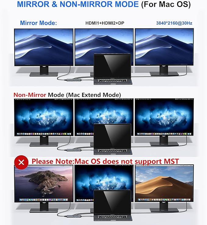 - 【USB C Docking Station Dual Monitors】: This laptop docking station dual monitor allows you to extend 3 monitors which provide more space for work and you can do different project on different monitors.Please Note Before Purchase: Only the built-in usb c port of your laptop is the fully functional port, you can use the dual/triple monitor function, if you are not sure, please feel free to contact us, we are happy to help you to check if this docking station is compatible for your device.