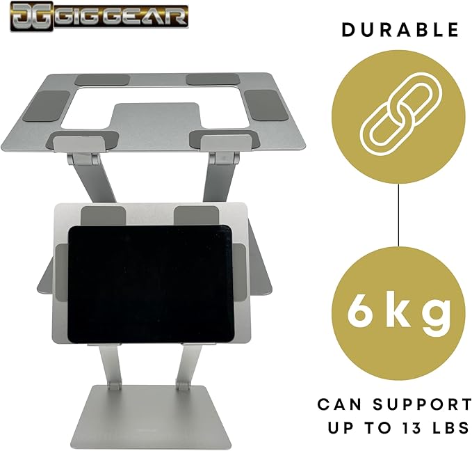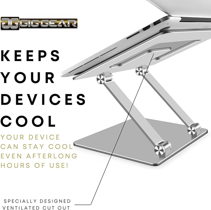 Gig Gear iLEVL Ergonomic Laptop Stand for Desk - Height Adjustable Laptop Riser Fits All Phone, Tablets, and Devices 10 to 17 Inches - Universal Multi-Angle Aluminum Foldable Laptop Stand (Silver)
