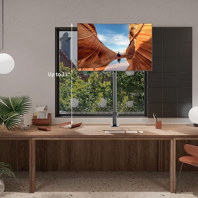 Pholiten Single Tall Monitor Stand Desk Mount,Extra Tall 31 Inch Fully Adjustable Monitor Mount for 13-32 Inch LCD Screen,Holds up to 22lbs