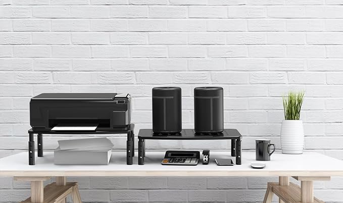 - Sturdy & Reliable: 2 Pack monitor stand is made of durable metal, sturdy enough to hold up to 44lbs (19 kg) of weight. Comes with 14.5 x 10 inch size platform, the monitor riser is suitable for most devices such as laptop, computer screens, printer, speakers, telephone,etc..