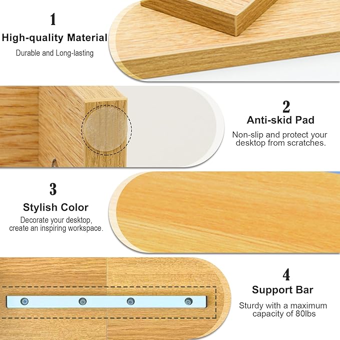 - Better Support to 80lbs: The computer stand is made of eco-friendly thicken MDF wood board, and process optimization to make the stand more beautiful and durable. This monitor stand riser is a good choice for your office, living room, bedroom, and study.