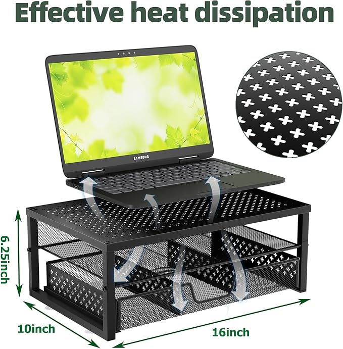 - 2 Tier Monitor stand: Makes it ideal for all computers, monitors and laptops, great for use at home, the office or a home office