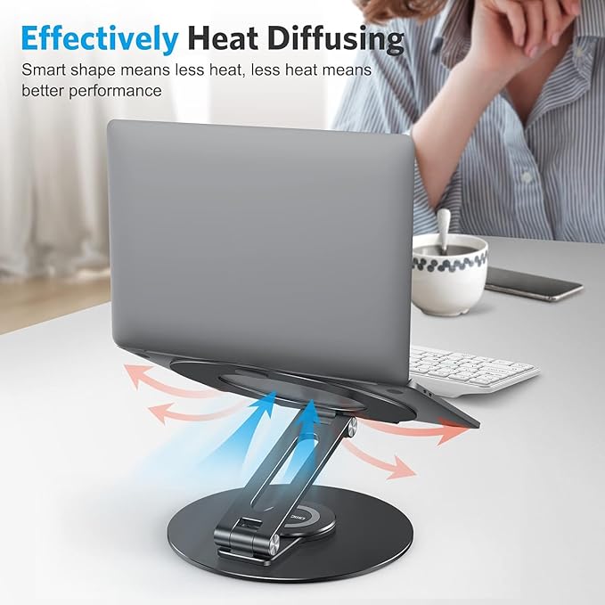 - ROTATABLE & ERGONOMIC: Featuring a 360° rotatable axis connecting with the base, this laptop stand allows you to swivel your laptop to any angle. It elevates your laptop to your eye level to fix your posture and reduce your neck and back stiffness.