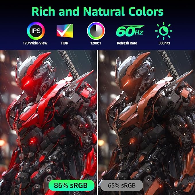 - [FHD Portable Monitor]: Featuring 1080P resolution, 86%sRGB color gamut, 178° FULL viewing angle, HDR, and Low Blue Light IPS A-grade screen, this 15.6 inch screen with two VESA holes on the back of monitor can be easily and stably mounted on a VESA stand for landscape and vertical mode