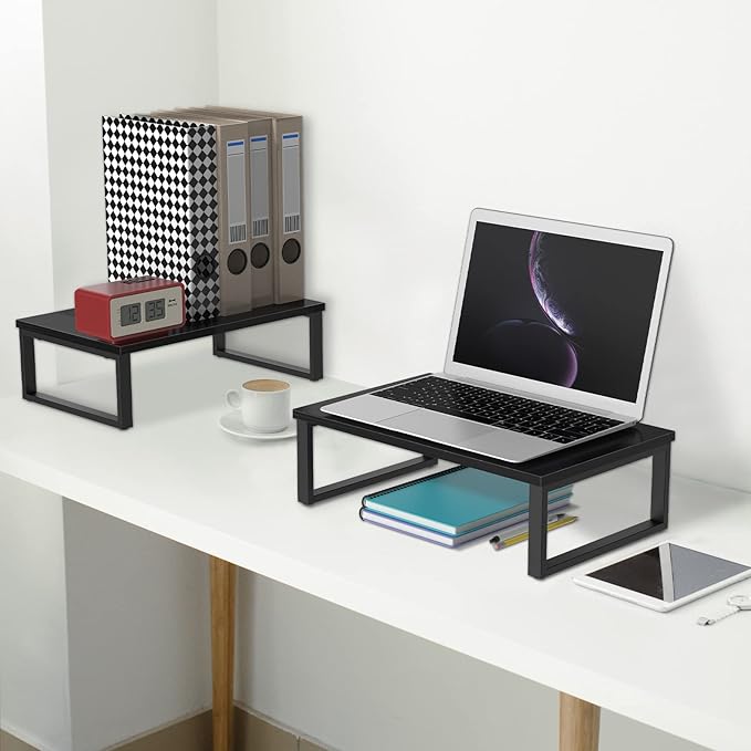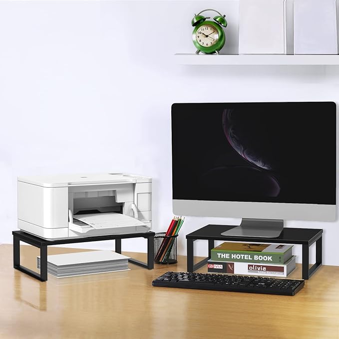 - STURDY AND SOLID - Thicker MDF wood board combined with heavier metal frames create this monitor stand riser 2 pack. A single computer stand can hold up to 60 pounds and you can place monitors, computers, printers, and more on it without any worries.