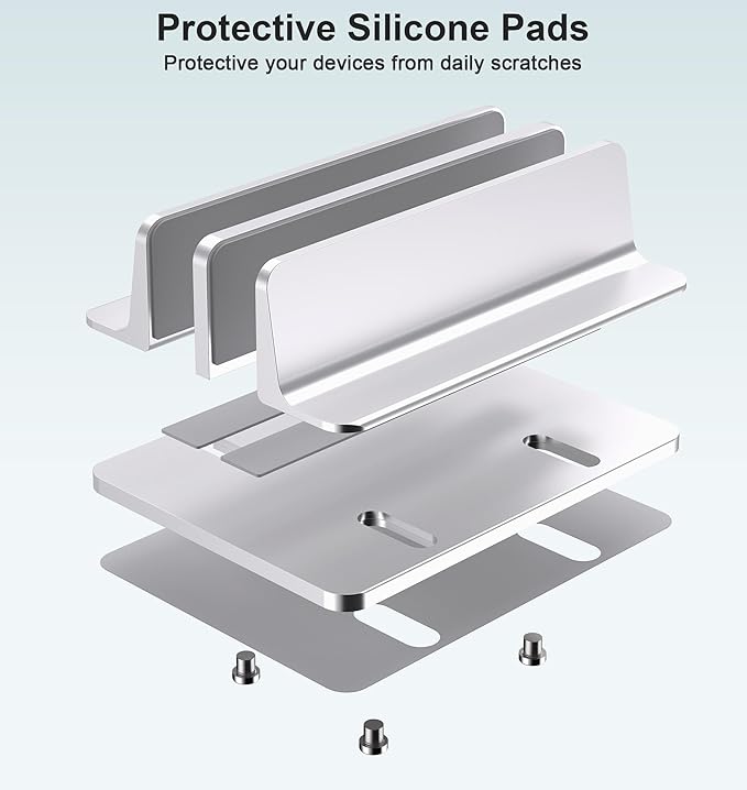 - Protective Mat: Non-toxic and non-slip silicone mats cover the laptop slots to avoid scratches on your devices; non-slip silicone pads pads on the base ensure stability and security