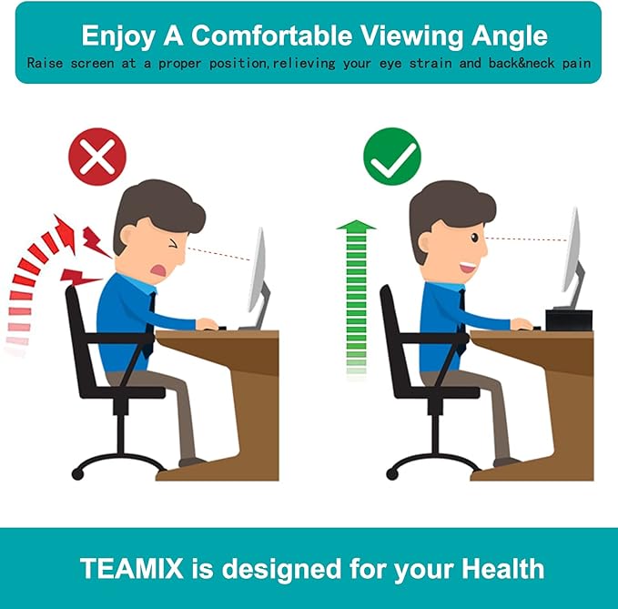 - Multi-function Stand: Teamix black monitor stand riser can be used as a laptop stand, laptop riser, desktop shelves printer holder/TV stand riser with storage,even a small coffee bar for home office. Fits perfectly with laptops, keyboards, mouse, and keep your desktop tidy.
