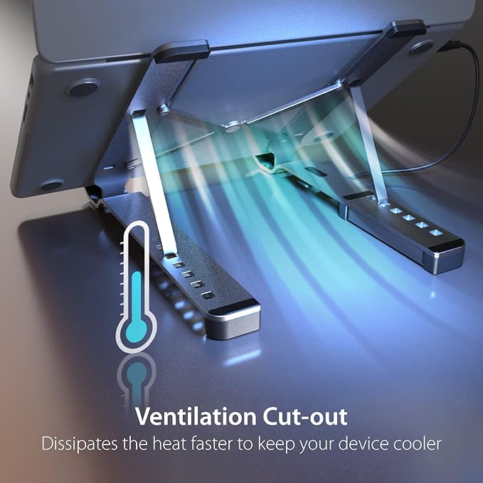 j5create Portable Aluminum Laptop Stand with USB 4-Port Hub, Foldable and Adjustable Notebook Riser with 4 USB-A Ports for MacBook, Laptop, and Tablet up to 16" (JTS223)