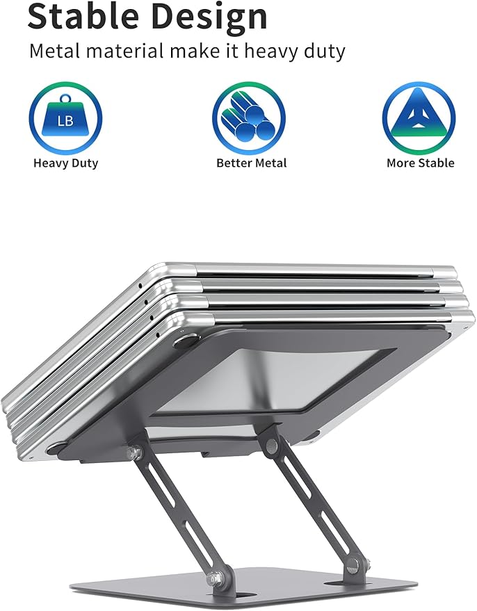 - More Stable & Less Wobble - Made of better quality metal material, the base of the laptop stand is heavier. More stable and sturdy than normal laptop riser which is made of lightweight Aluminum alloy.