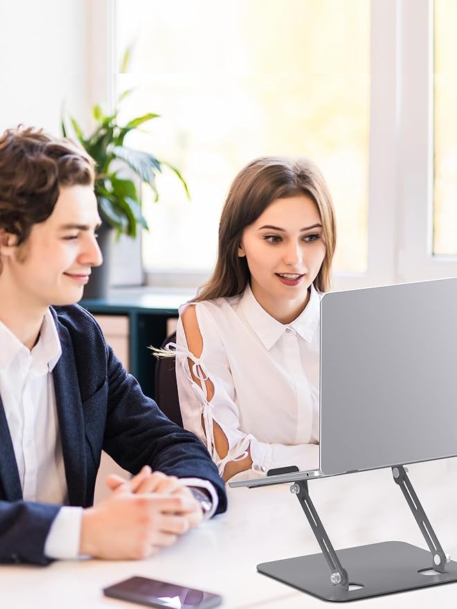 - Adjustable & Foldable - Flexible enough to make adjustments that can hold on wherever you set it to. Adjustability makes it more ergonomic. Eye-level height of your laptop keep your neck from pain. And you can fold it up when you do not need it. Easy to store and make your office desktop clean.