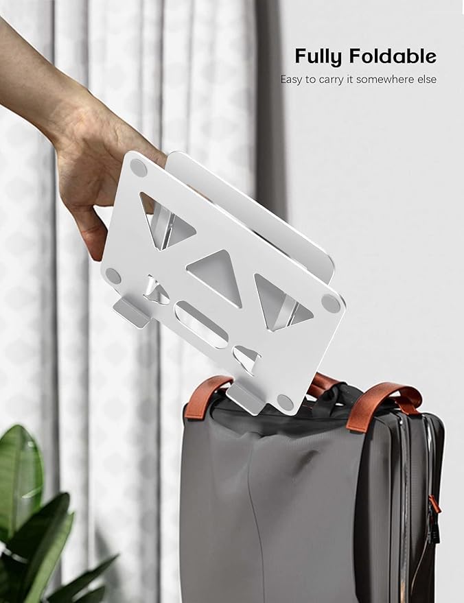 - Foldable and Portable: The foldable structure of portable laptop stand is easy to fit into your backpack for convient travel trips. This foldable laptop stand can be effortlessly folded, thus saving space on your desktop. you can take the stand for laptop/ipad anywhere at any time. No matter whether you're going to the office, a coffee shop, or any other place.