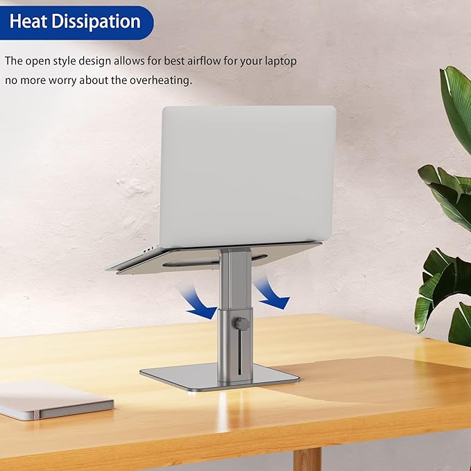 - Keep Laptop Cool: the open aluminum design provides good ventilation and airflow to prevent your laptop from overheating. Thanks to the open design, you could also keep your laptop peripherals under the stand, such as keyboard, mouse and other office items.