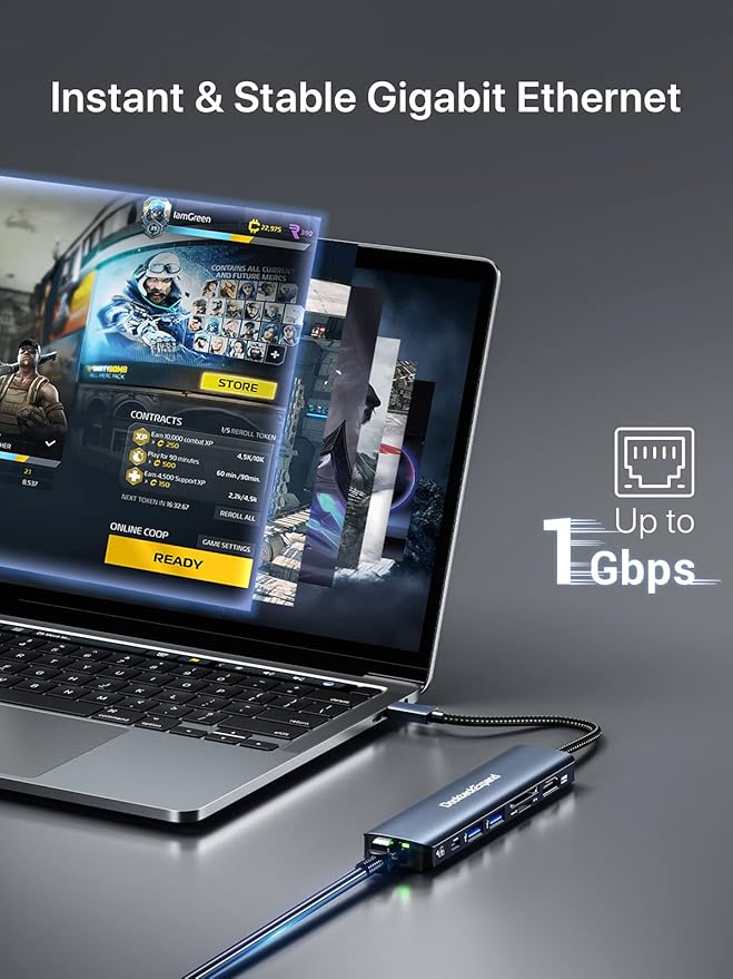 USB C Hub Ethernet, DockteckExpand 7-in-1 Multiport Adapter Type C to 4K@60Hz HDMI, Gigabit Ethernet, 100W PD Charging, 2 USB 3.0, SD/TF Card Readers, for MacBook Pro/Air, iPad Pro/Air, XPS and More