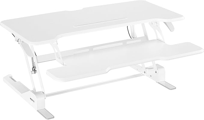 - STYLISH AND DURABLE: This white standing desk converter complements any modern office or home setup. The sturdy frame ensures durability and stability for years of reliable use.