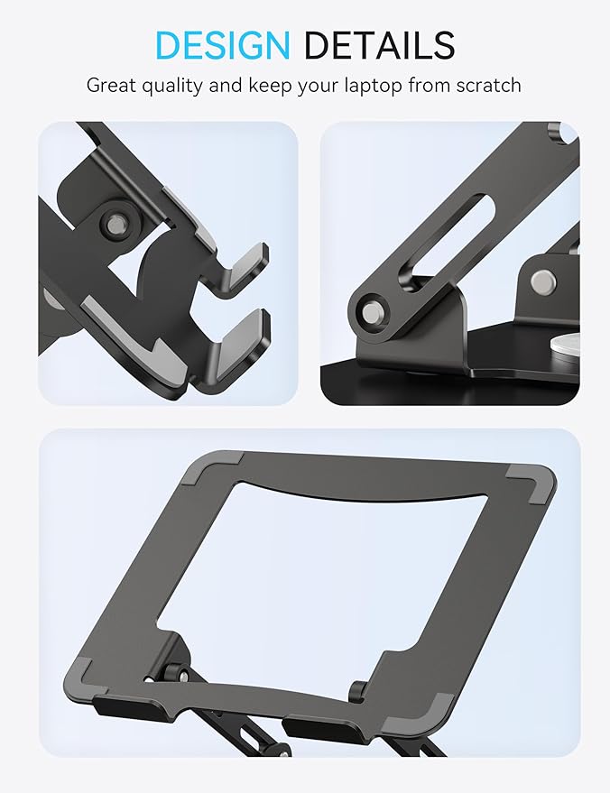 - Heavy and Stable: Made of high-quality metal material, the laptop stand base is heavier than normal laptop risers made of lightweight aluminum alloy; and upgraded joint screws keep the laptop stand stable at the desired height and angle, providing less wobbling and more stability.