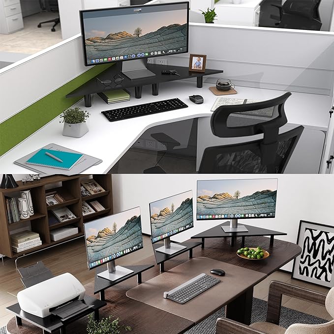 2 Pack White Corner Monitor Stand, Triangle/Square Adjustable Height Riser, 27-inch Universal Desktop Shelf for Computer, Laptop, PC, iMac, Printer (Black)