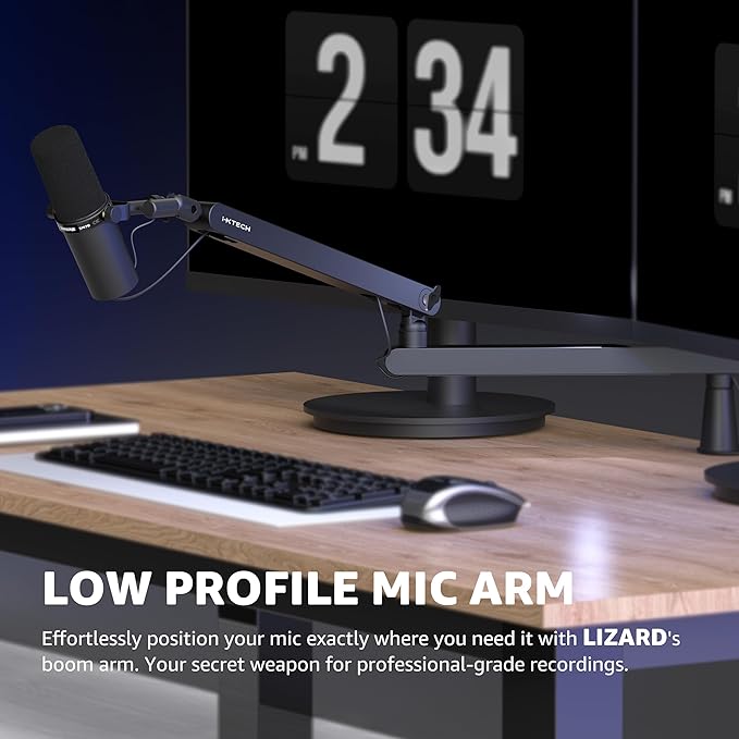 IXTECH Mic Arm Desk Mount, Low Profile 360° Swivel Mic Boom Arm, Adjustable Microphone Arm with Detachable Rise Column and Built-In Cable Management for Streaming and Recording.