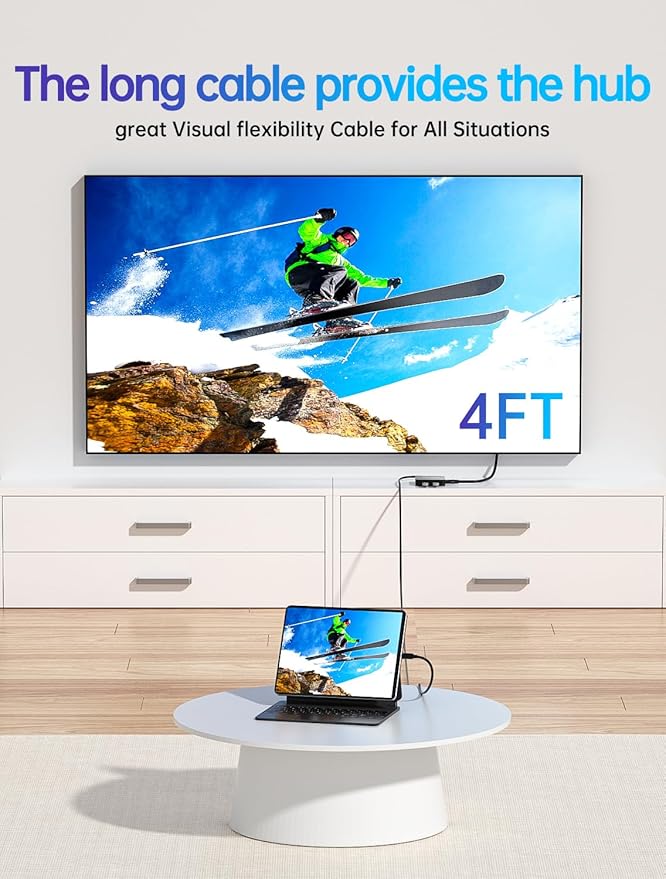 - 4FT Long Cord for Desktops: ACASIS USB C Hub features 4FT long cord, helps extend the usb port of your host when using desktops. Space Saving and Keep your desk Organized.