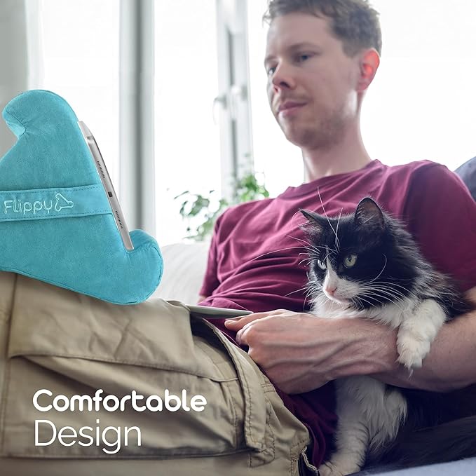 - ERGONOMIC DESIGN BY U.S. DESIGNER: Designed by a U.S. designer, Flippy offers steady positioning as an iPad stand, Kindle holder, or tablet pillow, helping maintain a comfortable setup during extended reading, streaming, or device use.