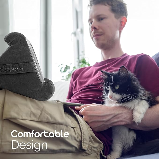 - ERGONOMIC DESIGN BY U.S. DESIGNER: Designed by a U.S. designer, Flippy offers steady positioning as an iPad stand, Kindle holder, or tablet pillow, helping maintain a comfortable setup during extended reading, streaming, or device use.