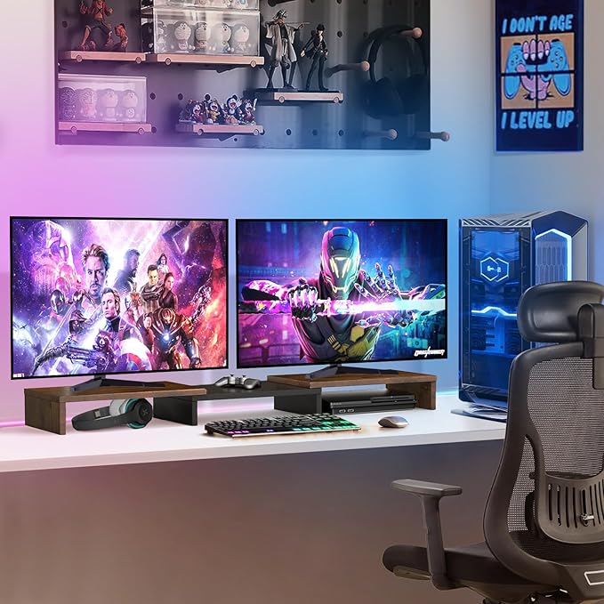 TAVR Dual Monitor Stand Riser, Computer Monitor Stands for 2 Monitors, Extra Long Multifunctional Desktop Organizer Riser for Computer, Laptop, PC, Printer, TV, Max 43.3" Length, Rustic Brown