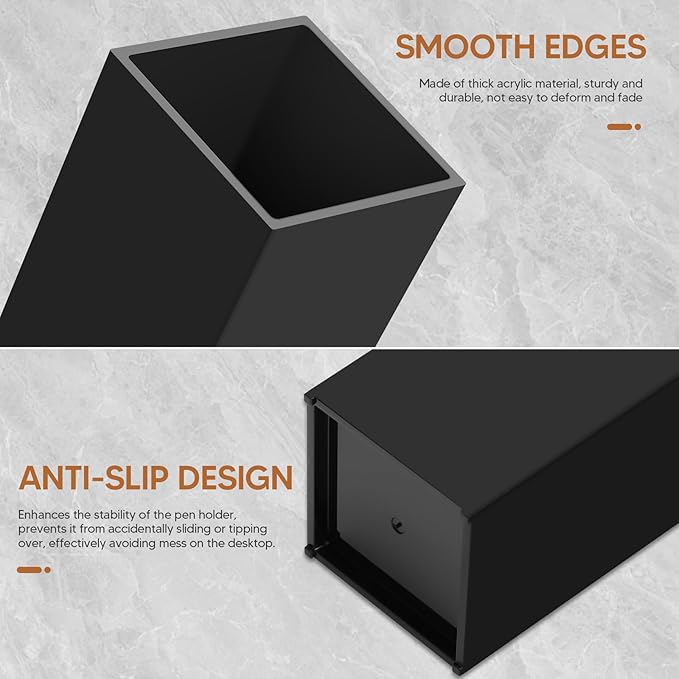 - 【Premium Quality 】Made from thick and sturdy acrylic material, our black pencil holders are designed to withstand daily use without deformation or fading. The smooth and clear surface of the acrylic ensures easy cleaning, allowing you to maintain a hygienic and stylish workspace. Invest in these premium-quality pencil holders for long-lasting durability and a professional appearance.
