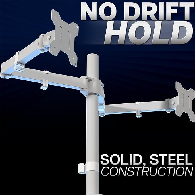 - Ultrawide Compatibility: Dual ultra-wide monitor mount fitting two screens up to 38” in size and 22 lbs in weight each with VESA 75x75mm or 100x100mm backside mounting holes
