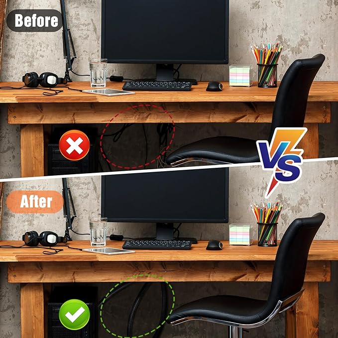 - Practical Design: our wire protector tubing not only provides functionality but also incorporates aesthetics with a pleasant black color; The split opening design enables easy wire insertion and removal, making the wire maintenance effortless and efficient; Encasing your wires has never looked so classy and neat