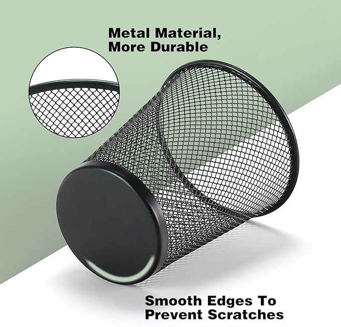 - USEFUL--This round metal mesh pen holder is easy to store and organize office or school supplies. It is perfect for storing pencils, erasers, rulers and other office supplies, giving you a neat and organized desk.