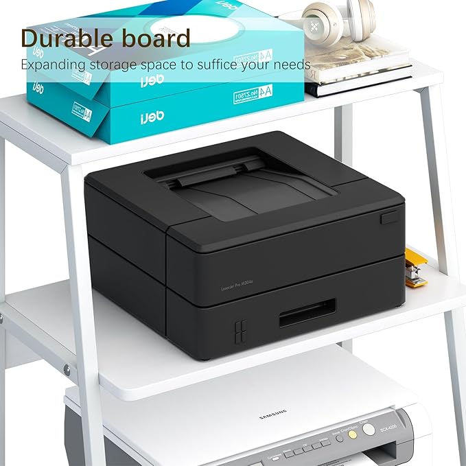 - 【Maximize Work Space】3 Tier printer stand provides more storage space and increases the area of the work area. The printer stand for desk is large enough to hold office supplies such as printers and fax machines.