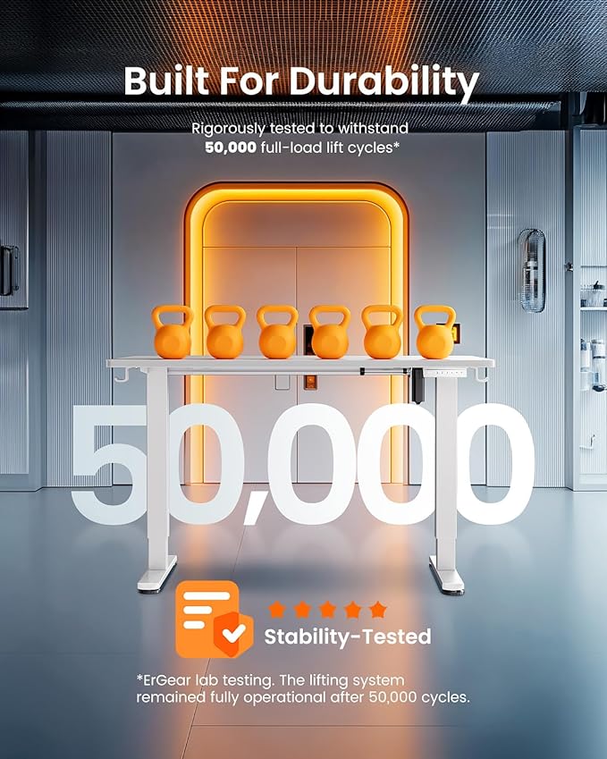 - 【50,000 Lifting Cycles, Reduced Maintenance】Tested for 50,000 lifting cycles, this sit stand desk is built to last and requires minimal upkeep, making it perfect for heavy-duty use in both home and professional settings.