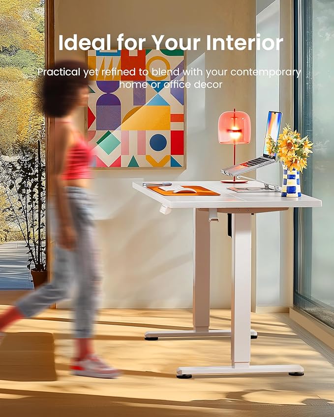 - 【Powerful Motor under 45dB Noise Level】Operating at a noise level of 45dB, this electric computer desk is as quiet as a whisper, ensuring a peaceful environment. Ideal for home offices, professional workspaces, and co-working environments, offering a comfortable and adaptable work experience.