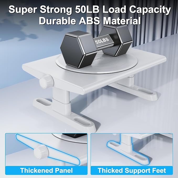 - 【Ultra Strong Weight Capacity, Wide Range of Application】Our monitor stand is made of thick ABS material, which can easily carry up to 50 pounds. The thickened panel and support feet design also make this monitor stands very stable and sturdy. Our display stand is not only suitable for monitors and laptops, but also for speakers, printers, coffee makers, TV and more.