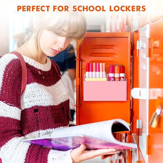 BEYGORM Magnetic Dry Erase Marker Holder for Whiteboard,Non-slip Acrylic Magnet Pen Holder for Fridge Refrigerator,Locker Organizer for Work,Locker Accessories,Pencil Cup for Desk(Pink)