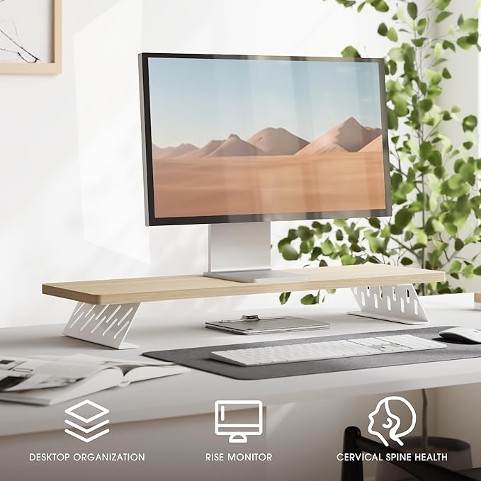 - 【Avoid Shoulder Pain】Desk shelf is raised 3.9" to a comfortable line of sight, effectively reducing the pressure on the neck and spine. The improvement of posture will make you more focused and prevent cervical spondylosis.