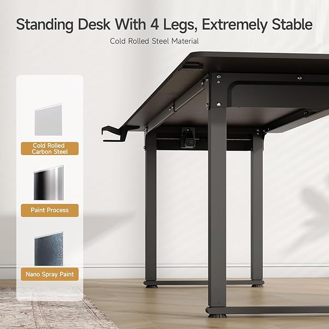 ONBRILL Standing Desk, 71x32 Inches Rectangle Stand Up Desk with 4 Legs, Dual Motor and Memory Controller, Adjustable Height from 28-46 Inches for Home and Computer Workstation, Black