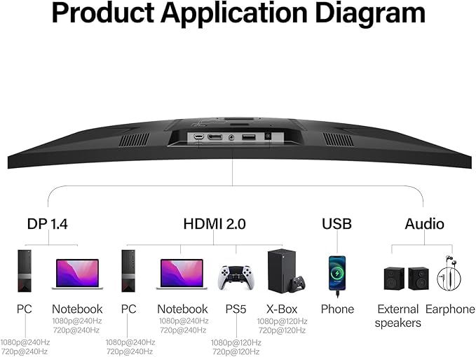 - Flexible Connectivity - Gawfolk Curved Gaming Monitor supports video interfaces via DisplayPort (up to 240 Hz) and HDMI (up to 120 Hz) ports. You can connect it to your game console, PC or laptop. Tilt angle adjustment from -5° to 10° and VESA 100*100 mm support for comfortable relaxing or working in an optimal position. Provides you with a pleasant office and gaming experience.