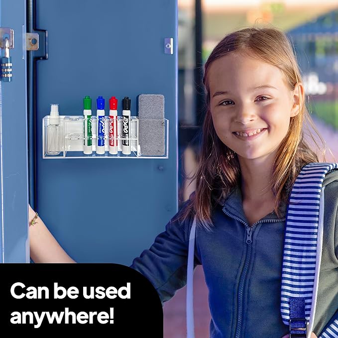 - [Premium Quality & Durability] Crafted from high-quality, clear acrylic, our marker holder is both durable and aesthetically pleasing. The thinner design saves space and offers a sleek, modern look that complements any office, classroom, or home setup. The strong magnetic backing and adhesive options ensure it stays securely in place, even with daily use.