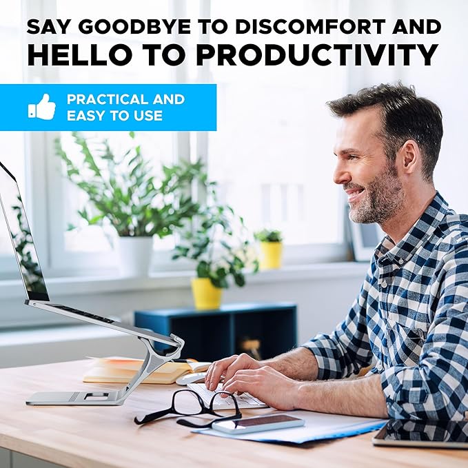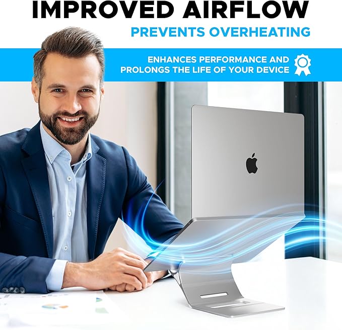 - Modern Design: Optimize your desk with an aluminum finish vertical laptop stand: cradle and hold your laptop or MacBooks, and mobile devices in style. Save valuable desk space, protect your device from spills, and provide better cooling with a vertical laptop holder.