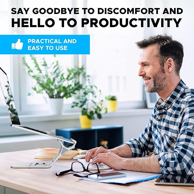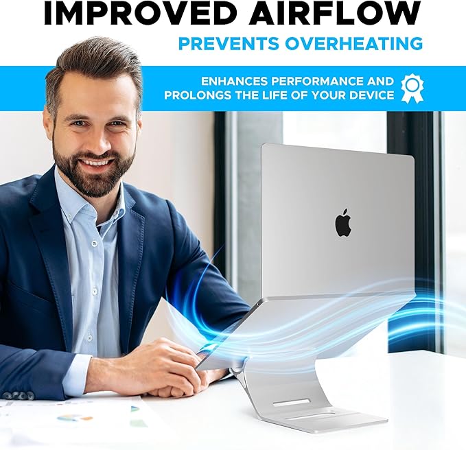- Modern Design: Optimize your desk with an aluminum finish vertical laptop stand: cradle and hold your laptop or MacBooks, and mobile devices in style. Save valuable desk space, protect your device from spills, and provide better cooling with a vertical laptop holder.