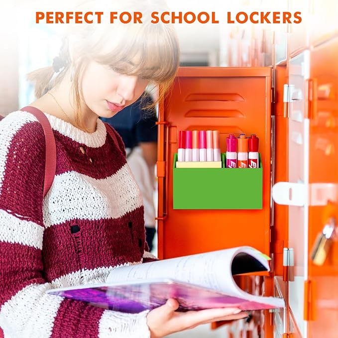BEYGORM Magnetic Dry Erase Marker Holder for Whiteboard,Non-slip Acrylic Magnet Pen Holder for Fridge Refrigerator,Locker Organizer for Work,Locker Accessories,Pencil Cup for Desk(Green)
