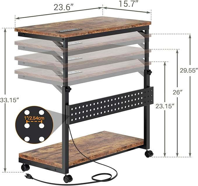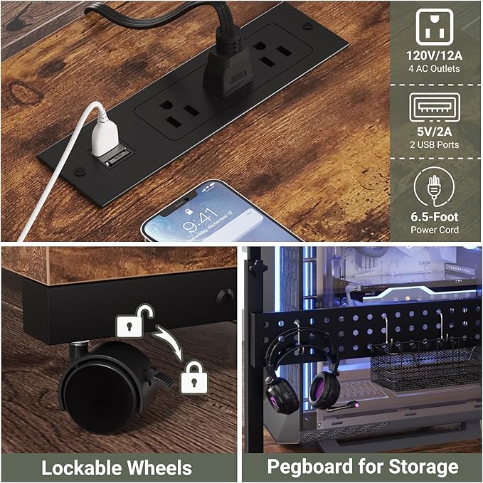 - CPU Holder with Outlets - Built-in useful electrical power outlets and USB ports (3 AC outlets + 2 USB charging ports) for your devices to plug in. It is handy and easier to plug in your computer tower, phone, iPad, or PC monitor. So you can keep cables better controlled.