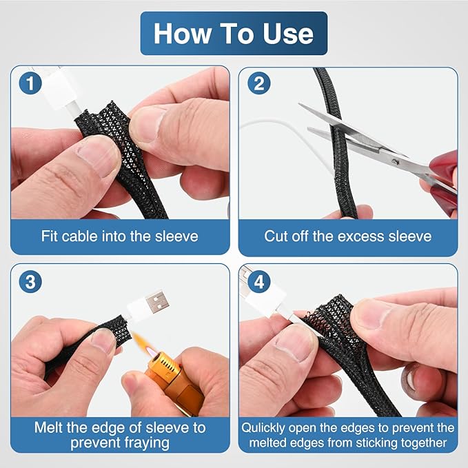 - Easy to Install: With splitting and self-wrapping design, the sleeving can easily cover and bundle cables together to keep the wires tidy and protect them from abrasion, dust, and heat. You can flexibly add or remove wires at any desired point of the sleeving to fit your unique needs